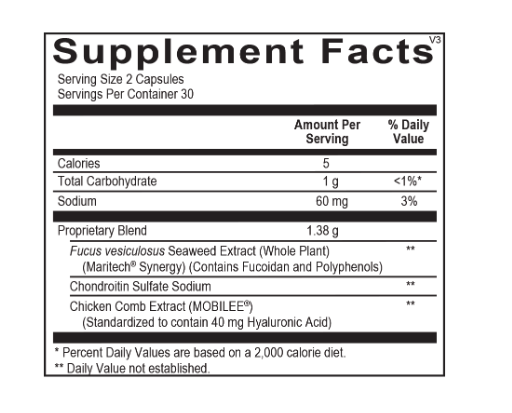 Maritech® Synergy is a proprietary, multifunctional, certified organic complex that combines the synergistic effects of specialized polyphenols and fucoidan sourced from the wild brown seaweed known as Fucus vesiculosus. Brown seaweed is known to contain more bioactive components than both red or green seaweed. Fucus vesiculosus has one of the highest antioxidant values and total phenolic content, the most potent polyphenol being phlorotannin. Glycocalyx restoration and other beneficial mechanisms of action support the therapeutic use of fucoidan and phlorotannins from Fucus vesiculosus for cardiovascular wellness.